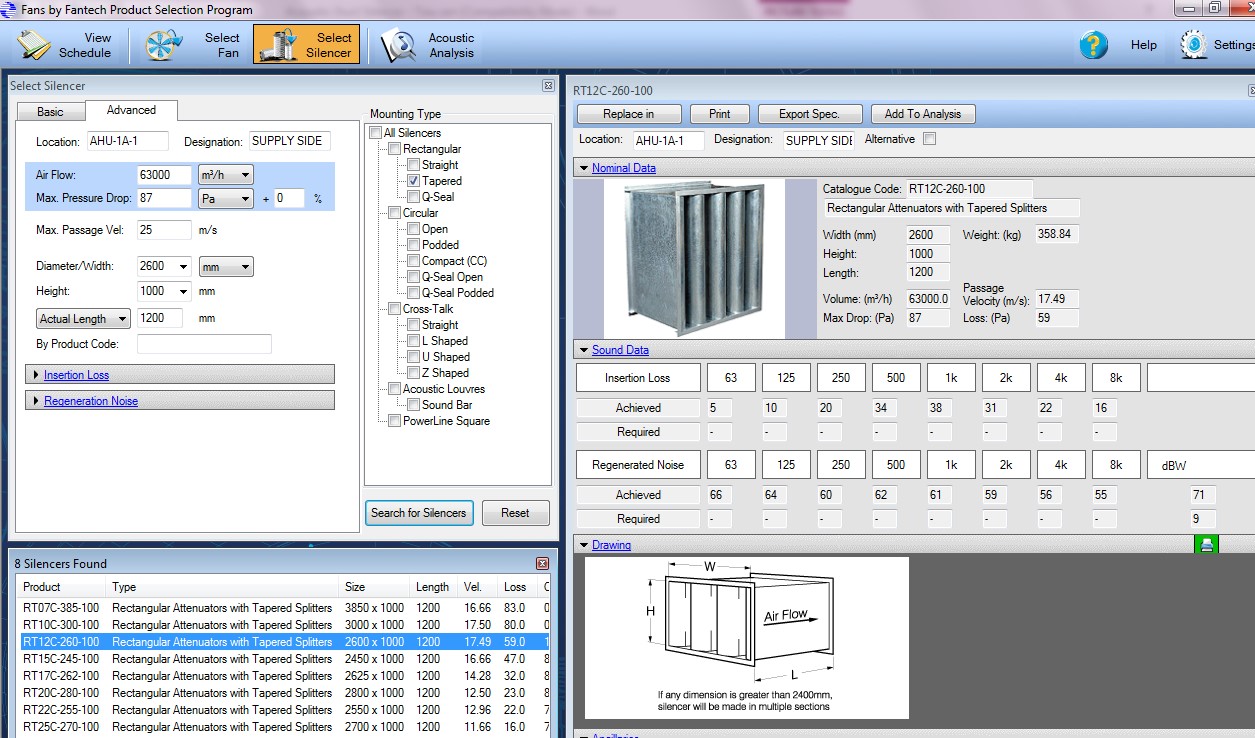 Phần mềm phân tích tiêu âm Fantech được thiết kế theo tiêu chuẩn ASHRAE.
