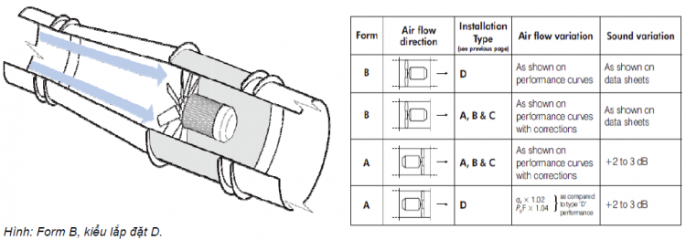 Thông thường Fantech sản xuất quạt hướng trục nối ống gió có hướng gió theo Form B (tạm gọi là chiều quạt thuận) và trừ khi chạy theo Form A được yêu cầu tại thời điểm đặt hàng.